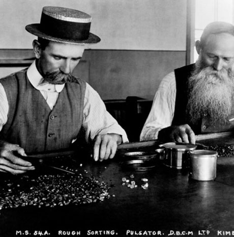 Russia, Botswana, Canada, Namibia and South Africa are the current frontrunners in producing diamonds. Diamonds are mostly found in volcano pipes, but diamond mining is also possible on the open sea and in rivers. To keep the annual production volume at a certain level, people are always looking for new mines. De Beers is the most famous of all the mining companies, but Dominion Diamond Corporation, Rio Tinto and Alrosa are also regarded as important players.