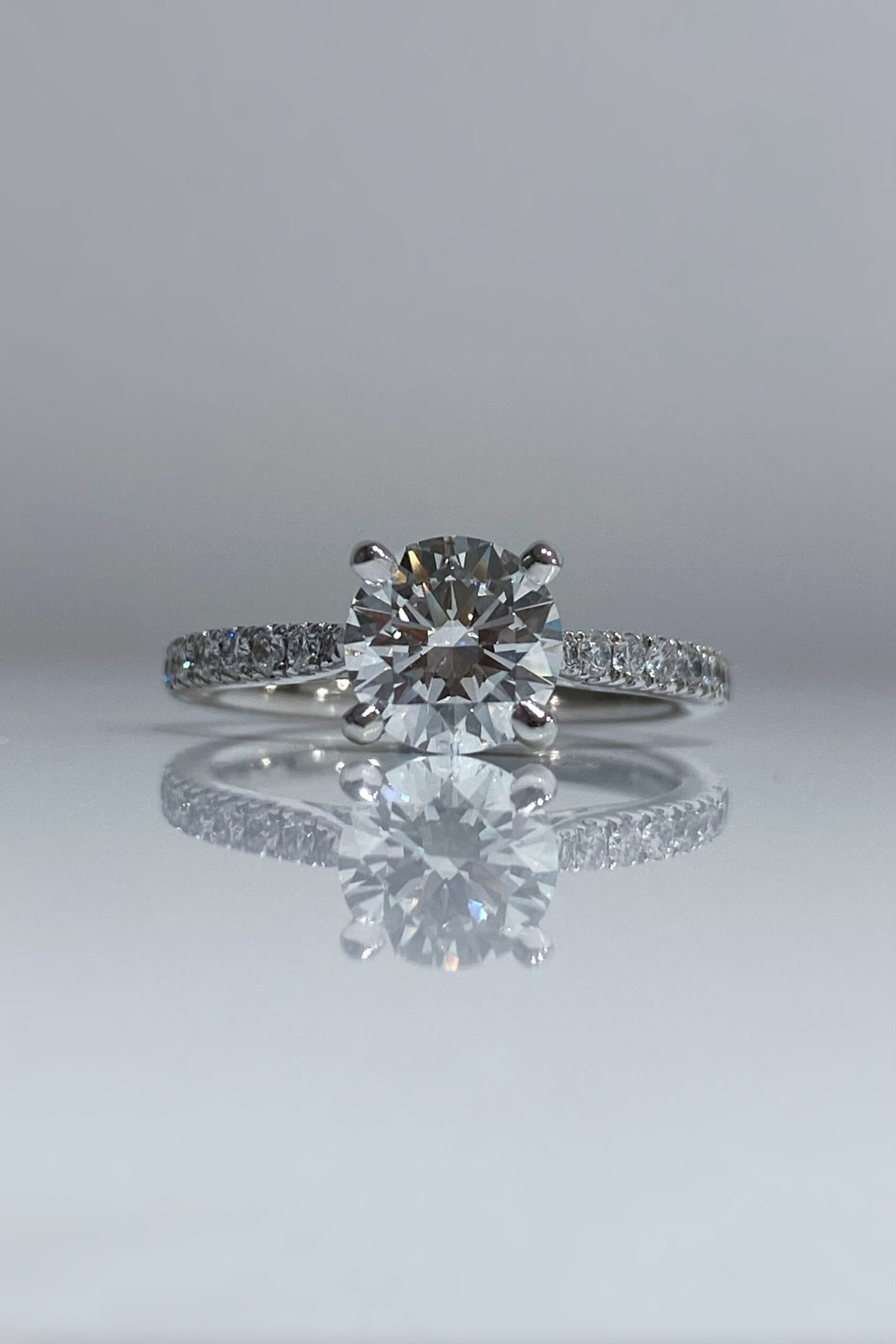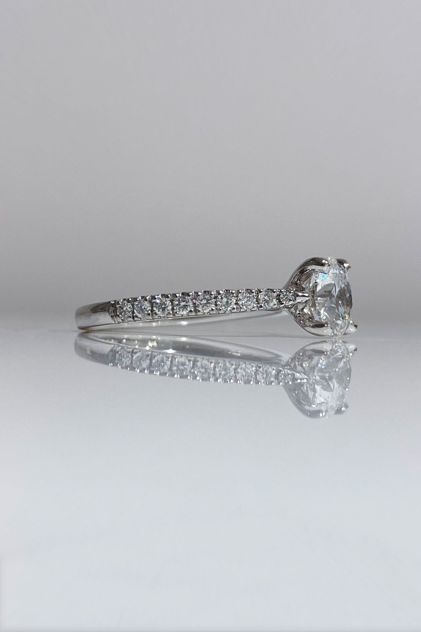 Solitaire Montmartre Handcrafted in platinum 950/1000, set with brilliant-cut diamond of 1,01ct D VVS2 and paved with natural brilliant-cut diamonds. Size 49 (resizeable).